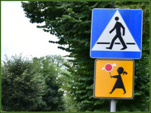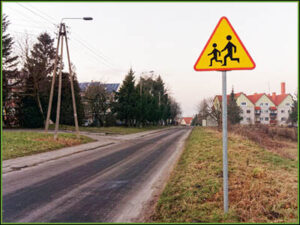 Tabliczka wskazuje, że przejście dla pieszych jest szczególnie uczęszczane przez dzieci.