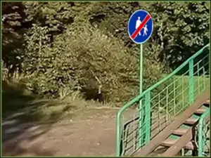 Znak zakazuje pieszym poruszania się po tej stronie ulicy, gdzie jest ustawiony.