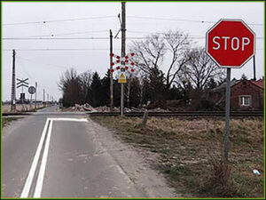 Znak ostrzega o skrzyżowaniu z drogą główną, oznacza, że trzeba ustąpić pierwszeństwa i dotyczy też tramwaju.