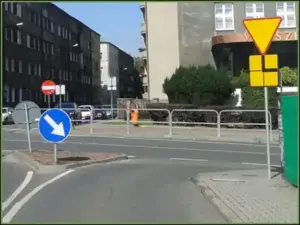 Te znaki wskazują, jak przebiega tutaj droga główna.